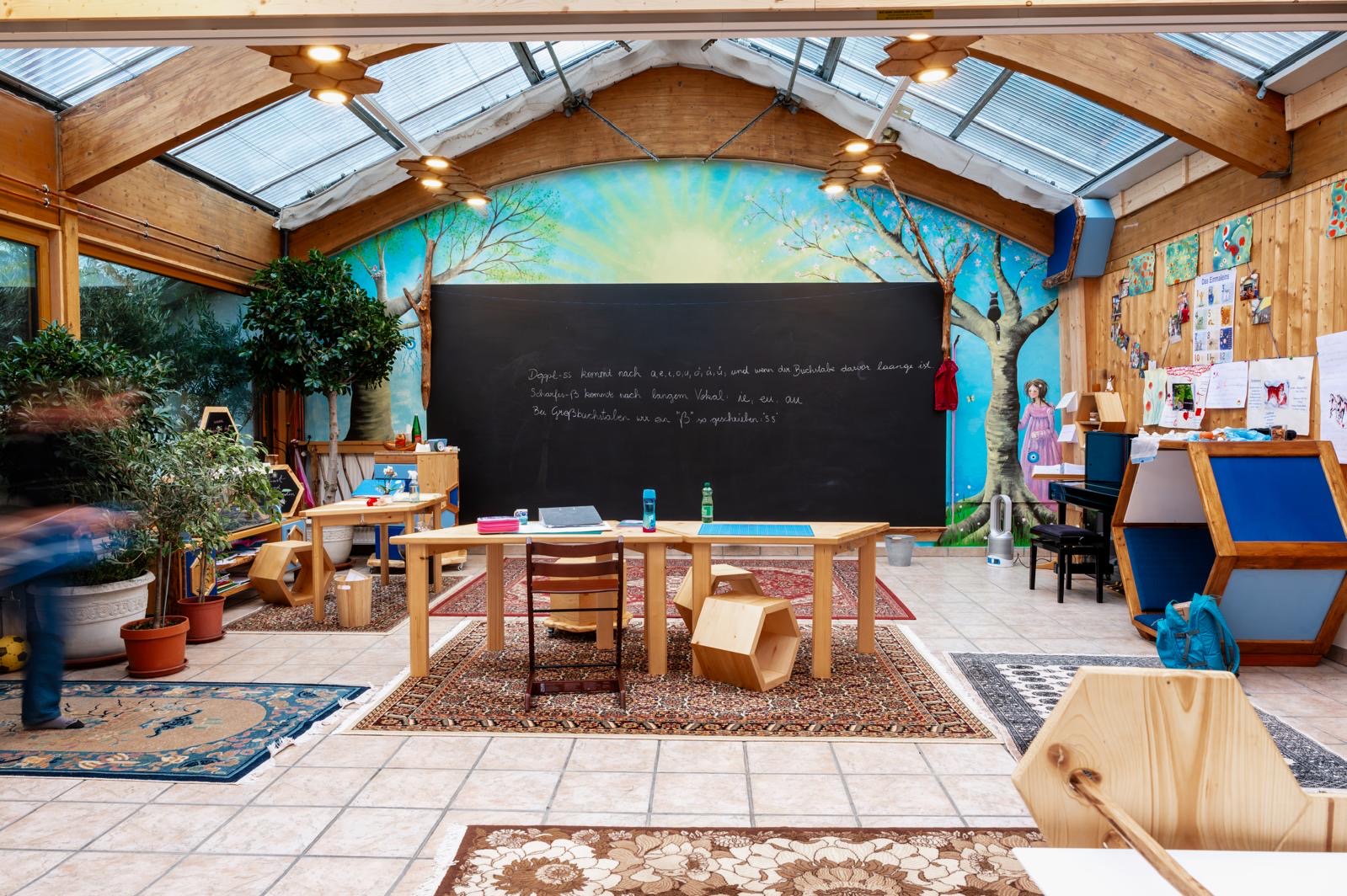 In den lichtdurchfluteten Räumen, wo einst Orchideen prächtig blühten, erfreuen sich nun unsere Schulkinder an den wärmenden Sonnenstrahlen.